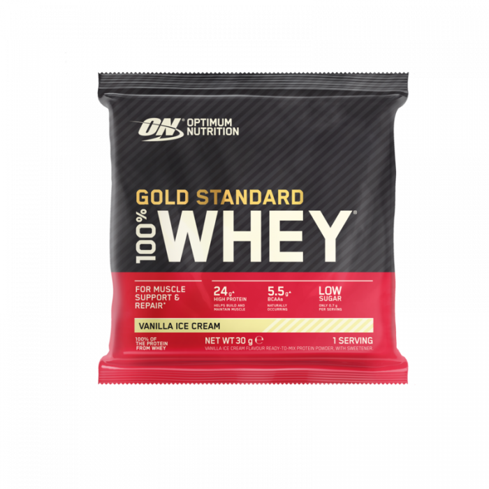 100% Whey Gold Standard Sample is een combinatie van wei-isolaat, concentraat en hydrolysaat met een geweldige smaak