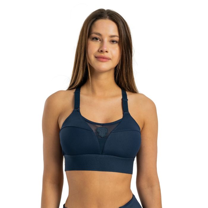Een ander belangrijk kenmerk van sportbeha's is borstondersteuning . Deze bh is gemaakt van zeer ondersteunende stof en een stevige ribband. Zo blijven je borsten op hun plaats, zelfs tijdens krachtige oefeningen en sprongen. Dit maakt hem perfect voor hardlopen, atletiek, gymnastiek, HIIT, krachttraining, crossfit en alle andere sporten. Om ervoor te zorgen dat de beha deperfecte pasvorm en functionaliteit biedt, is hij voorzien van verwijderbare padding, een verstelbare ribband en gekruiste bandjes. De bandjes kunnen aan de voorkant worden versteld, wat uiterst comfortabel is en je kunt het op elk moment zelf doen. Al deze eigenschappen zorgen ervoor dat de bh perfect past, zelfs als je afvalt of juist meer spiermassa in je rug krijgt.