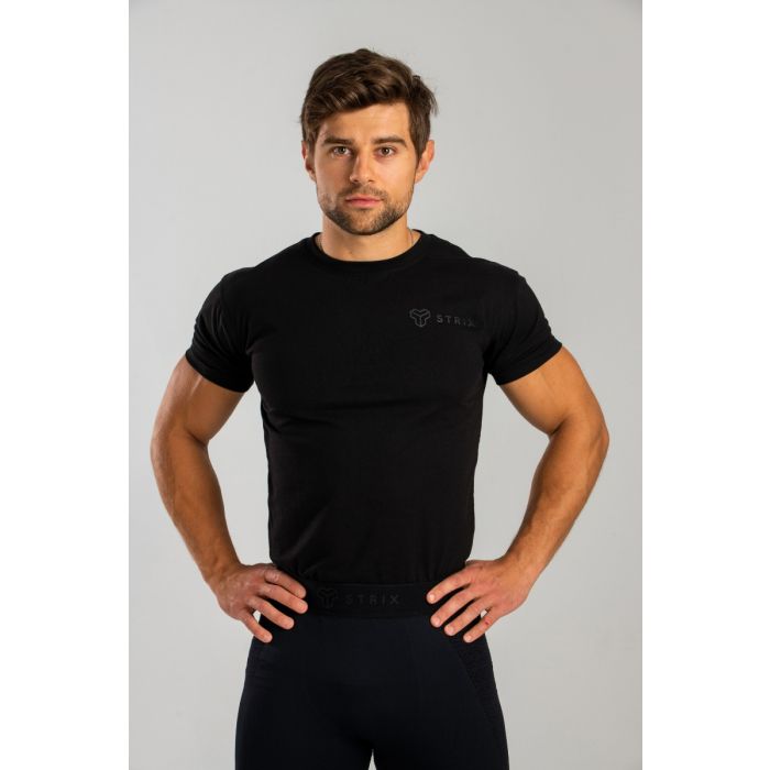 Essential T-shirt is een stijlvolle top met korte mouwen, gemaakt van een combinatie van katoen en polyester. Het is zeer ademend en houdt je lekker droog. Je zult verliefd worden op de lichte en comfortabele materialen, die het minimalistische donkere ontwerp perfect aanvullen. Het shirt is gewoon gemaakt voor sport en vrije tijd.