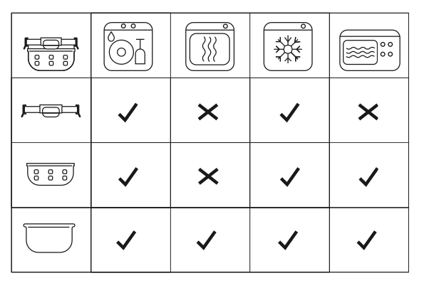 - kan gebruikt worden in een koelkast, vriezer, magnetron en oven volgens de instructies op de verpakking