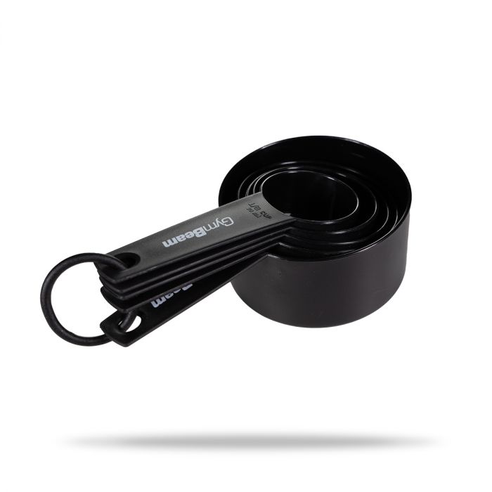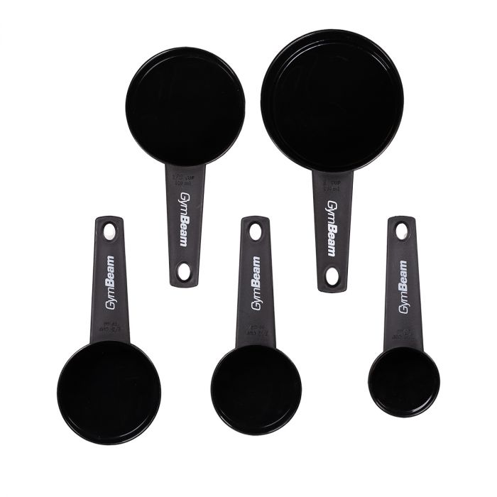 Measuring Cups zijn een praktisch keukenhulpmiddel dat je helpt het tijdrovende proces van het afmeten en wegen van je ingrediënten te vermijden. Je gebruikt ze om de porties van je voedingssupplementen af te meten, evenals de hoeveelheden van ingrediënten die je gebruikt bij hetkoken of bakken, zorgen dat je dejuiste dosering onder controle hebt. De set bevat vijf zwarte maatbekers met een inhoud van 30, 60, 80, 120 en 240 ml respectievelijk, versierd met het GymBeam logo. Ze zijn gemaakt van polypropyleen, wat hun duurzaamheid garandeert.Naast koken en bakken kunnen maatbekers ook worden gebruikt om de exacte grootte van je poedersupplementen af te meten.