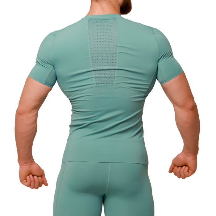 Mid Compression T-Shirt met korte mouwen is een functioneel stuk dat de meest veeleisende recreatieve en professionele atleten zal aanspreken. Dankzij het ontwerp biedt het medium compressie, wat helpt spierschokken en trillingen veroorzaakt door beweging te verminderen. Het is daarom ideaal voor iedereen die optimaal wil profiteren van de voordelen van compressiekleding. Het kan namelijk helpen bij een efficiëntere bloedcirculatie. Dit zorgt ervoor dat meer voedingsstoffen de spieren bereiken tijdens het sporten, wat een positief effect heeft op de prestaties zelf. Daarnaast helpt dit ook het versnellen van de "metabolische reiniging" in de vorm van het verwijderen van melkzuur (lactaat) en andere afvalstoffen van de energiestofwisseling die zich tijdens de training in de spieren ophopen. Als gevolg daarvan ondersteunt het ook het daaropvolgende herstel en kan het ook een effect hebben op het verminderen van spierpijn na de training.