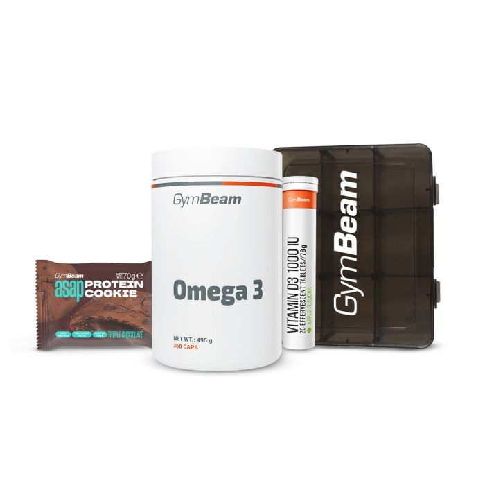- 360-capsule verpakking + proteïnekoekje, Vitamin D in de vorm van bruistabletten en een handige pillendoos voor tabletten en capsules