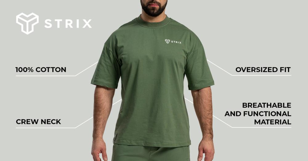Oversized Tee is een must-have stuk in de garderobe van elke man die geen genoegen neemt met doorsnee. Dit tijdloze stuk verlegt de grenzen van design en vormt een elitemodel voor dagelijks gebruik. Het charmeert met strakke lijnen met STRIX logo en is ontworpen om perfect bij elke outfit te passen. Je kunt hem moeiteloos combineren met joggers, jeans, shorts of broeken. Het perfect afgestemde ontwerp wordt aangevuld door een zorgvuldige selectie van compromisloos materiaal in de vorm van katoen, dat zorgt voor maximaal draagcomfort. Het T-shirt is zeer aangenaam voor de huid, laat je lichaam ademen en geeft het een natuurlijk gevoel van vrijheid.