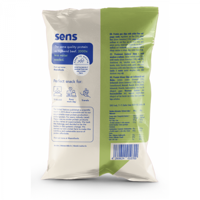 Heeft u Protein pea chips with cricket flour and poppy seeds - SENS? geprobeerd? Deel uw ervaring met ons en onze gemeenschap door een toe te voegen