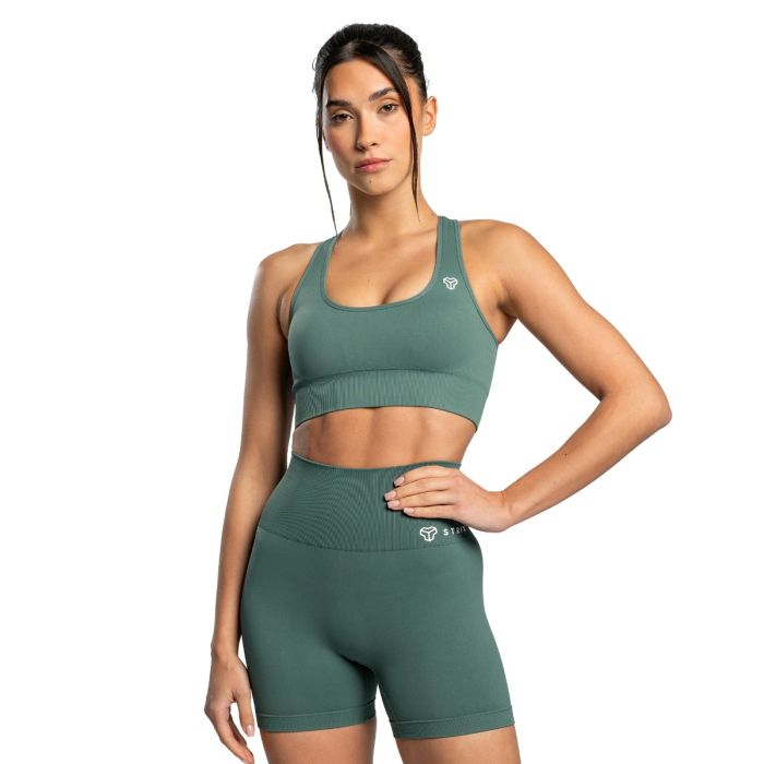 Hand in hand hiermee iseen goed doordachte snit. Onder de buste zit een stevige geribbelde band die prettig aanvoelt op de huid, niet drukt en toch ondersteuning biedt. Praktische uitneembare vulling verbetert deze ondersteuning. Het naadloze ontwerp zorgt voor maximaal comfort op de huid. Een stijlvolle uitsnede op de rug maakt de bh nog aantrekkelijker, terwijl de stof tot een minimum wordt beperkt, voorkomt onnodig zweten Om ervoor te zorgen dat de bh stevig op zijn plaats blijft zitten, heeft hij twee bredere bandjes die maximale ondersteuning bieden tijdens intensieve trainingen. Een smaakvolle ronde halslijn versterkt de algehele stijlvolle look. Een van de grootste voordelen van deze sportbeha is het minimalistische ontwerp. Een effen basis wordt aangevuld met een stijlvol STRIX opschrift op de achterkant en een subtiel logo op de voorkant. Hij past moeiteloos bij shorts, leggings of joggers. Dankzij de unieke uitsparing wil je er zelfs geen sweatshirt of T-shirt overheen dragen. Als je op zoek bent naar een comfortabele sportbeha voor zowel training als vrije tijd, dan heb je die nu gevonden. Naadloze kleding biedt gewoon strakke, minimalistische lijnen en een aantrekkelijke look, waardoor je zelfs tijdens het sporten stijlvol blijft.
