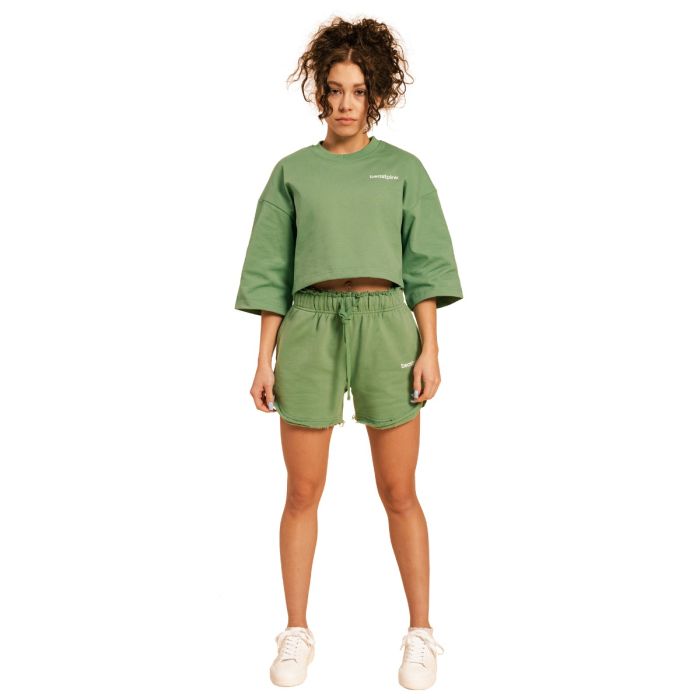 Women's Cropped Serenity T-Shirt - een modieus stuk met een losse (boxy) pasvorm en verlengde mouwen, dat geschikt is voor casual kleding en lichtere sportactiviteiten