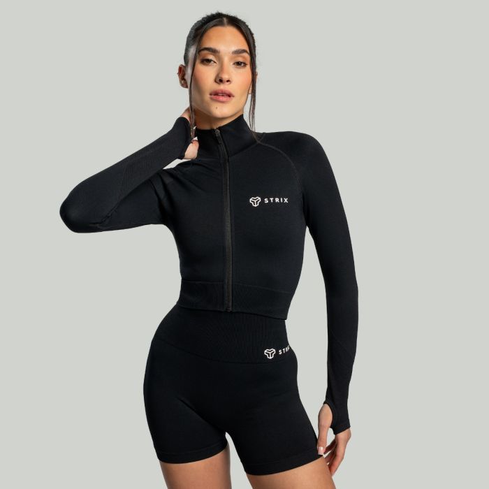 Women's Cropped Seamless Top met rits is een uniek sportief stuk dat perfect in je garderobe past. Het is gemaakt van een combinatie van nylon en elastaan, zodat het perfect bij je figuur past en zweet betrouwbaar afvoert. Bovendien heeft het mouwpanelen voor een beter ademend vermogen om transpiratie te minimaliseren. Dit maakt het geschikt voor zelfs de meest intensieve workouts.