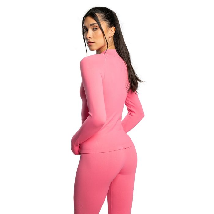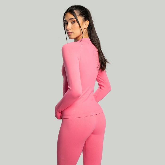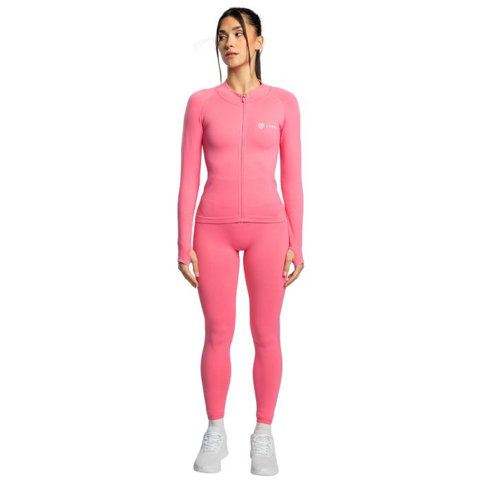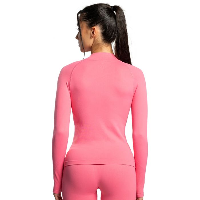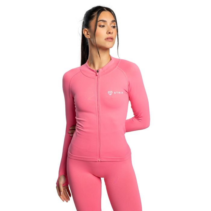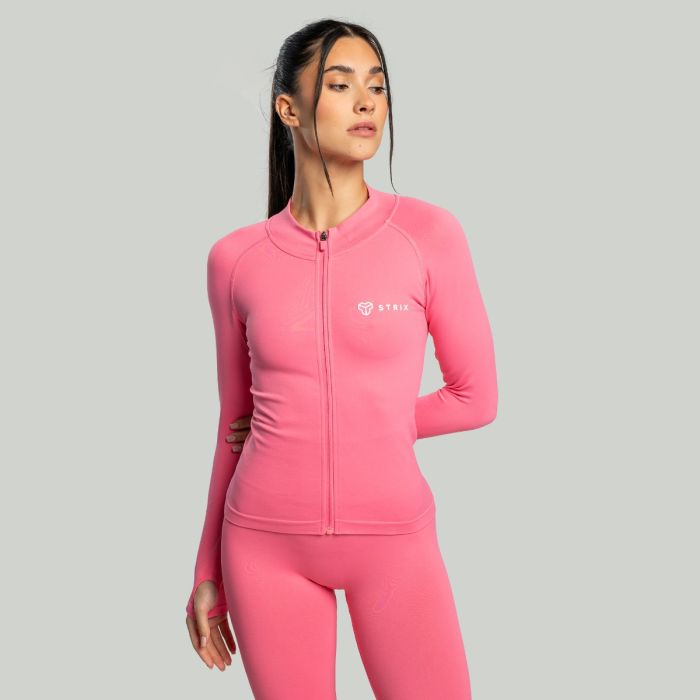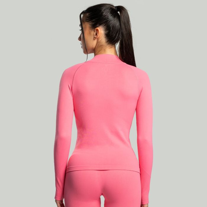 Voor een perfecte pasvorm is het voorzien van 4-way stretch technologie, waardoor je onbeperkt kunt bewegen in alle vier richtingen. De snit accentueert vrouwelijke rondingen, waardoor het niet alleen flatterend is, maar ook gemakkelijk te combineren met leggings of shorts. Een kleine opstaande kraag en ritssluiting dragen bij aan de veelzijdigheid, waardoor het geschikt is voor zowel koeler als warmer weer. Je kunt hem direct op de huid dragen als vochtafvoerende basislaag of over een lichtgewicht T-shirt voor extra warmte. Deze naadloze fitnesstop voor dames is perfect voor gym, hardlopen, yoga, wandelen en andere activiteiten. Het minimalistische ontwerp zorgt voor een moeiteloze styling, terwijl de naadloze constructie zorgt voor een gestroomlijnde, moderne look, zodat je zelfs tijdens het sporten stijlvol blijft.